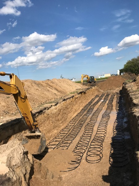 Installation of underground piping systems that transfer heat between the ground and a geothermal heating or cooling system.